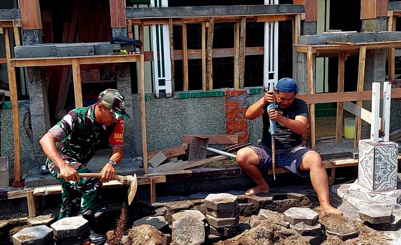 Kegiatan ini merupakan inisiatif warga setempat untuk meningkatkan kualitas infrastruktur di sekitar masjid, khususnya dalam mengatasi potensi genangan air saat musim hujan. Melihat antusiasme dan kebutuhan warga, Serda Muis tanpa ragu hadir dan bahu membahu bersama masyarakat.
