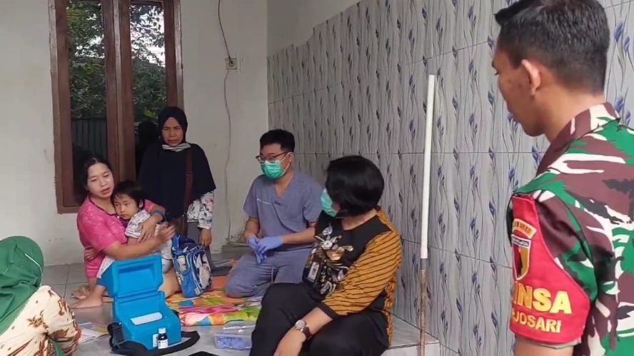 Sketsamalang.com – Babinsa Koramil 0833-03/Blimbing, Sertu Peni aktif berikan pendampingan tenaga kesehatan. Untuk memastikan para balita di wilayah binaannya mendapatkan perlindungan optimal dari berbagai penyakit.