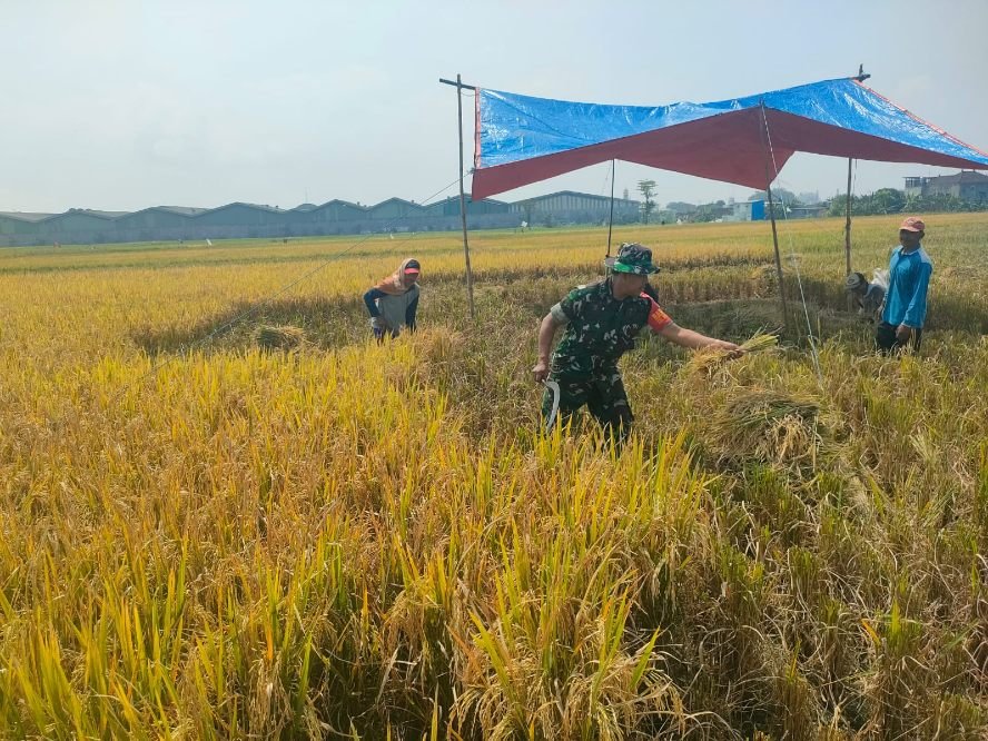 Sketsamalang.com – Babinsa Koramil 0833 – 03/ Blimbing Kelurahan Balearjosari, Sertu Risnoto terjun langsung ke sawah membantu proses panen padi bersama para petani, Rabu (30/7/2025).