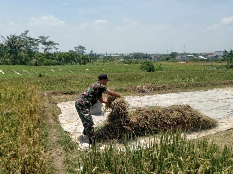 Sketsamalang.com – Babinsa Koramil 0833-04/Sukun, Kelurahan Bandulan, Kecamatan Sukun, Kota Malang, mendampingi para petani dalam kegiatan panen padi di wilayah binaannya. Kegiatan ini menjadi bagian dari upaya TNI dalam mendukung ketahanan pangan nasional serta mendorong peningkatan produktivitas pertanian masyarakat.