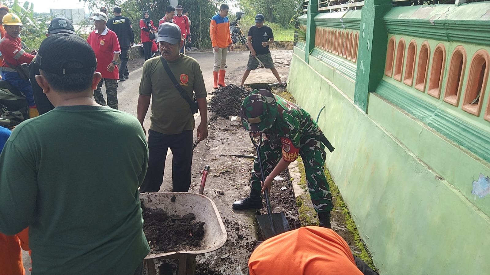 Babinsa Bandulan Serka Ludi Iswanto bersama perangkat kelurahan, warga setempat, serta elemen masyarakat bergotong royong membersihkan saluran air dan mengangkat tumpukan sedimen serta sampah yang menyumbat aliran drainase. Kegiatan ini difokuskan pada titik-titik yang rawan terjadi genangan air saat hujan deras.