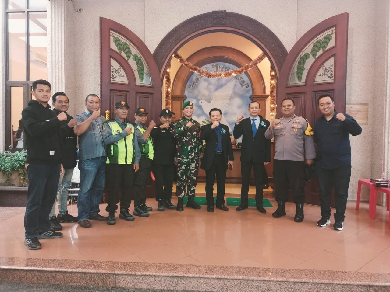 Selain melakukan pengamanan, Babinsa juga berkoordinasi dengan pihak gereja dan tokoh masyarakat setempat guna meminimalisir potensi gangguan keamanan.