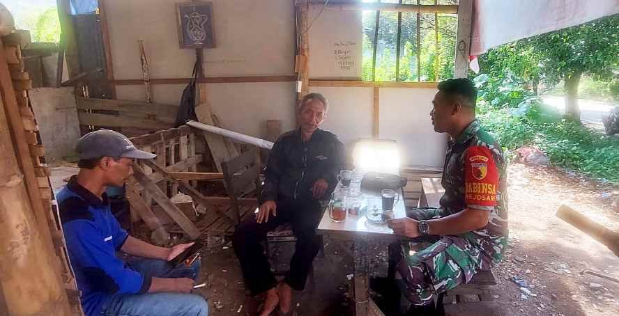 Kegiatan komsos tersebut dilakukan bersama salah satu warga, Bapak Jumari, sebagai upaya mempererat hubungan antara TNI dan masyarakat sekaligus menyerap aspirasi serta informasi yang berkembang di lingkungan warga.