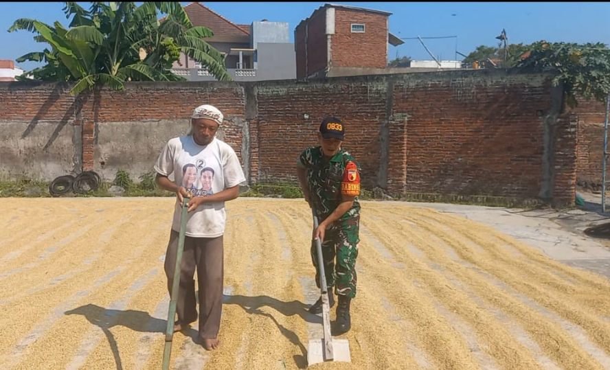 Sketsamalang.com – Babinsa Kelurahan Blimbing, Koramil 0833-03/Blimbing, Serka Supriyono mendampingi proses pengeringan gabah di wilayah Kelurahan Blimbing, Kecamatan Blimbing, Kota Malang, Selasa (30/9/2025).