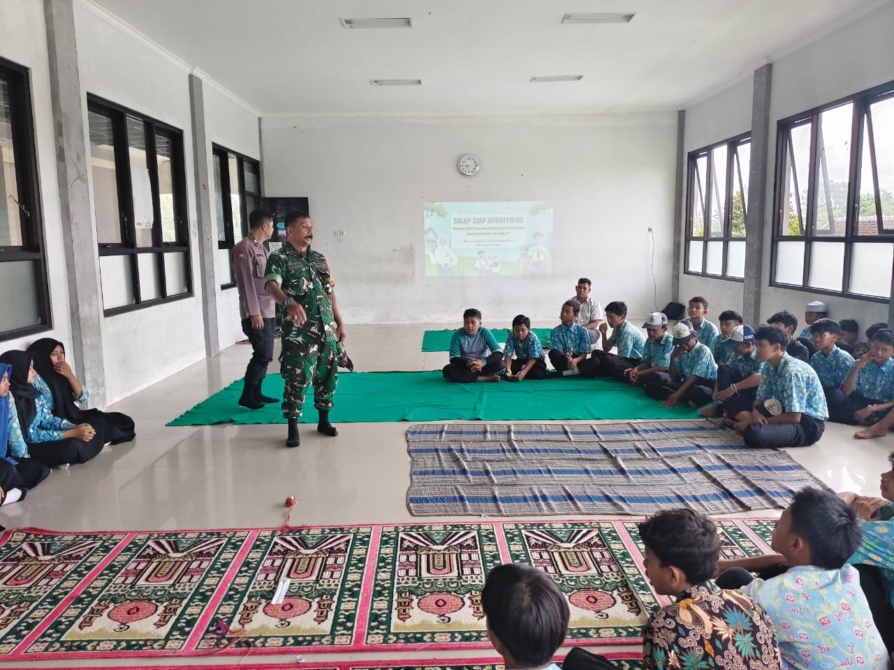 Sketsamalang.com – Peltu Sugianto Bintara Pembina Desa (Babinsa) Koramil 0833 – 04/ Sukun, Kelurahan Gadang memberikan pembekalan kedisiplinan kepada siswa dan siswi SMP Negeri 29 Kota Malang, sebagai upaya membentuk karakter generasi muda yang tangguh dan bertanggung jawab, Kamis (12/2/2026).