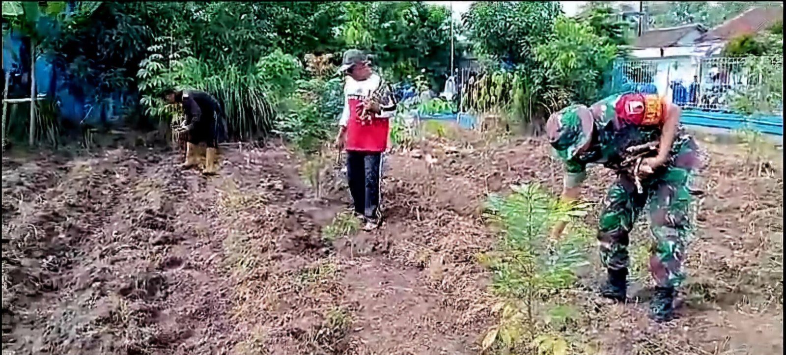 Dengan semangat gotong royong, Kopda Mifbahul Munir bersama warga binaan berjibaku menggarap lahan dan menanam bibit ubi. Kegiatan ini merupakan bentuk dukungan nyata TNI dalam mewujudkan ketahanan pangan di tingkat lokal.