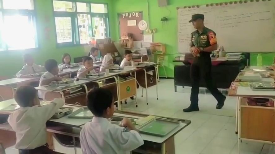 Sketsamalang.com – Babinsa Koramil 0833-01/Klojen, Serda Suryadi, mendampingi pelaksanaan program makan gratis bergizi di SDN 01 Kelurahan Kiduldalem, Kecamatan Klojen, Kota Malang, Selasa (26/8/2025). Kegiatan ini merupakan bagian dari program pemerintah dalam upaya meningkatkan gizi siswa di tingkat pendidikan dasar dan menengah.