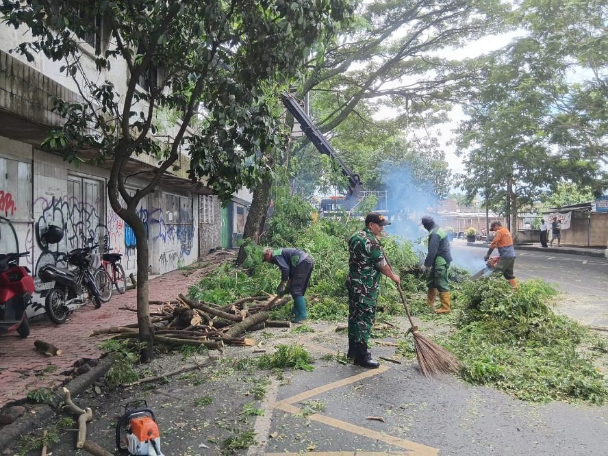 Sketsamalang.com – Dalam upaya menjaga keamanan dan keselamatan masyarakat, Babinsa Koramil 0833-01/Klojen, Sertu Gunawan, melaksanakan monitoring kegiatan pemotongan dan perapihan pohon trembesi yang rawan tumbang di Jalan Patimura, Kelurahan Klojen, Kota Malang, Rabu (25/2/2026).