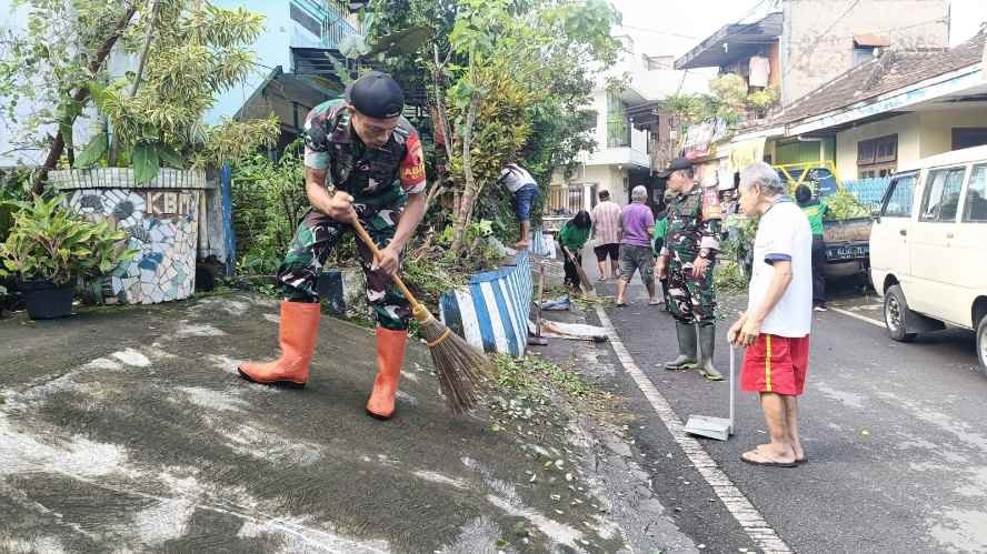 Babinsa Klojen Dampingi Warga Kerja Bakti Lingkungan