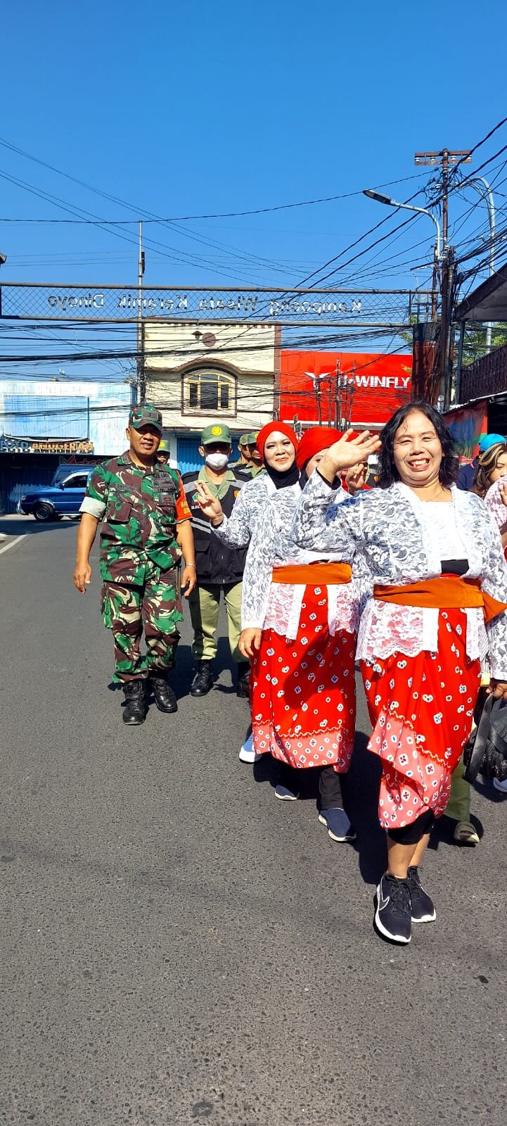 Sketsamalang.com – Babinsa Koramil 0833/05 Lowokwaru, Kelurahan Dinoyo, Peltu Edi Susanto bersama Bhabinkamtibmas melaksanakan kegiatan kirab festival kali brantas.