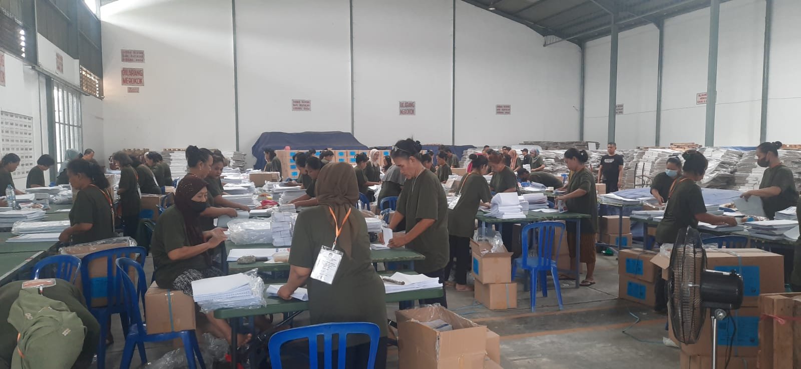 “Dengan setiap 1 bendel berisi 10 lembar Surat suara dan 1 Box berisi 500 surat suara. Kegiatan ini di mulai pukul 09.00 Wib sampai dengan batas waktu pukul 22.00 Wib,” ungkapnya.