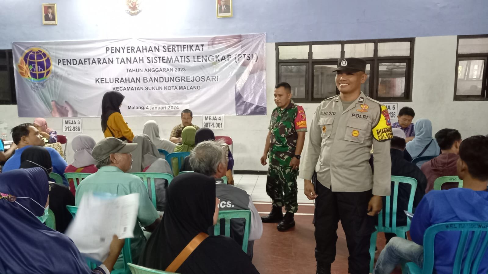 Babinsa Koramil 0833/Kelurahan Bandungrejo Serka Alfred menyampaikan para penerima sertifikat PTSL mulai datang dan mengambil nomor antrian dengan jumlah 462 Orang peserta ungkapnya.