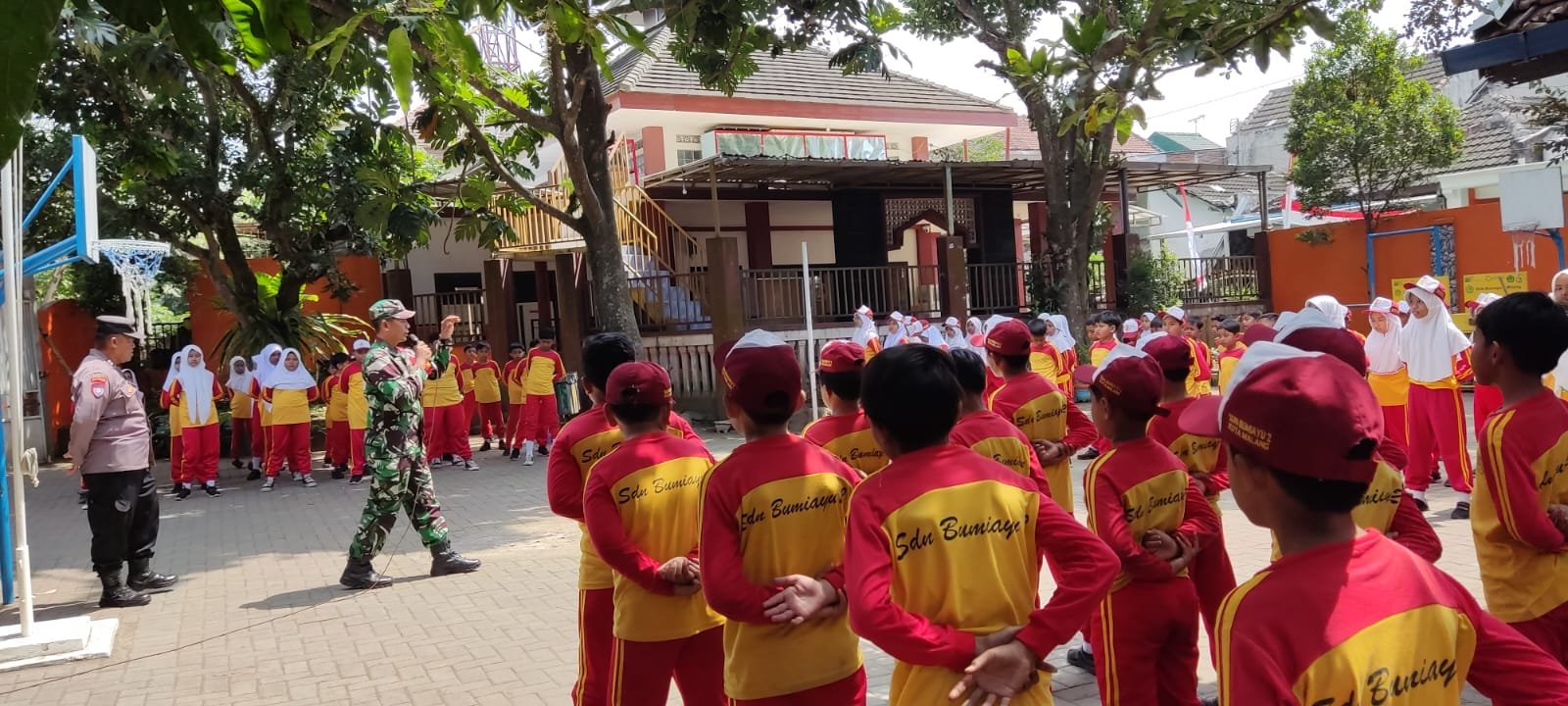 Sketsamalang.com – Dalam upaya membentuk karakter generasi muda yang berakhlak mulia dan cinta tanah air. Babinsa Koramil 0833/02 Kedungkandang Kelurahan Bumiayu, Pelda Sugiantoro bersama Bhabinkamtibmas melaksanakan pembinaan wawasan kebangsaan di SDN 02 Kelurahan Bumiayu.