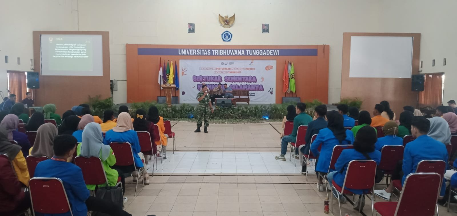 Sketsamalang.com – Babinsa Kelurahan Tlogomas, Serka Mashudi bersama Bhabinkamtibmas menghadiri kegiatan Program Pertukaran Mahasiswa Merdeka (PMM) angkatan ke-3, Universitas Tribhuwana Tunggadewi (Unitri) Malang.