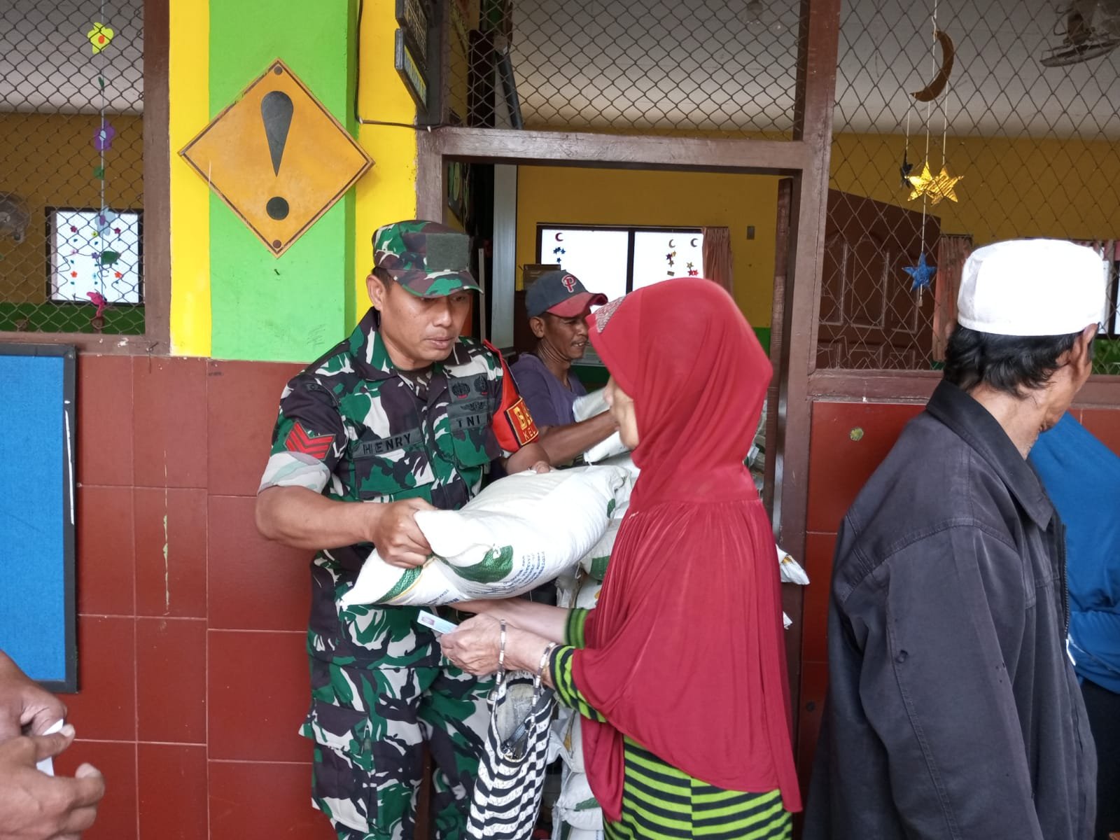 Sketsamalang.com – Babinsa Koramil 0833/02 Kedungkandang Kelurahan Mergosono, Kopka Henry bersama Linmas mendampingi penyaluran bantuan pangan beras tahun 2023. Kepada 852 orang penerima bantuan pangan.