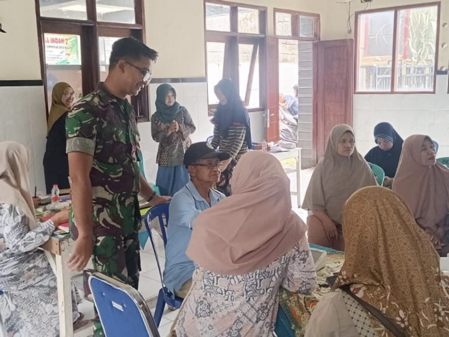 Sketsamalang.com – Babinsa Koramil 0833-05/Lowokwaru, Serda Abdul Rohman, mendampingi Pos Pelayanan Terpadu (Posyandu) Lansia di Balai RW 02 Kelurahan Merjosari Kecamatan Lowokwaru Kota Malang.