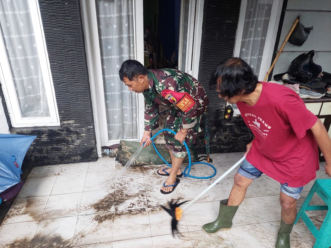 “Kami langsung bergerak cepat begitu mendapat laporan adanya luapan sungai yang berdampak pada pemukiman warga,” ujar Serda Mahmudin.