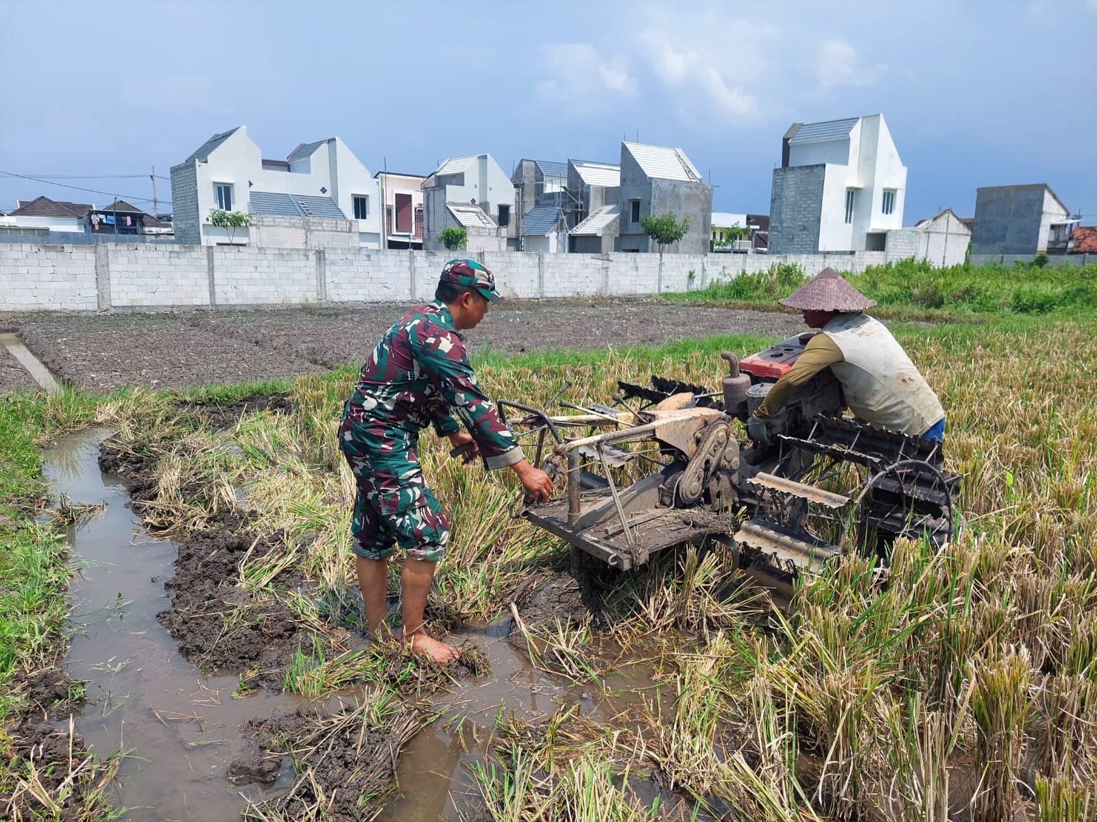 Sketsamalang.com – Babinsa Koramil 0833- 05/ Lowokwaru Kelurahan Tunggulwulung, Serda Mahmudin melaksanakan pendampingan langsung kepada petani setempat dalam pengolahan lahan sawah. Kegiatan ini bertujuan untuk memberikan edukasi serta teknik pengolahan lahan yang lebih efisien agar hasil panen petani meningkat, Minggu (6/4/2025).