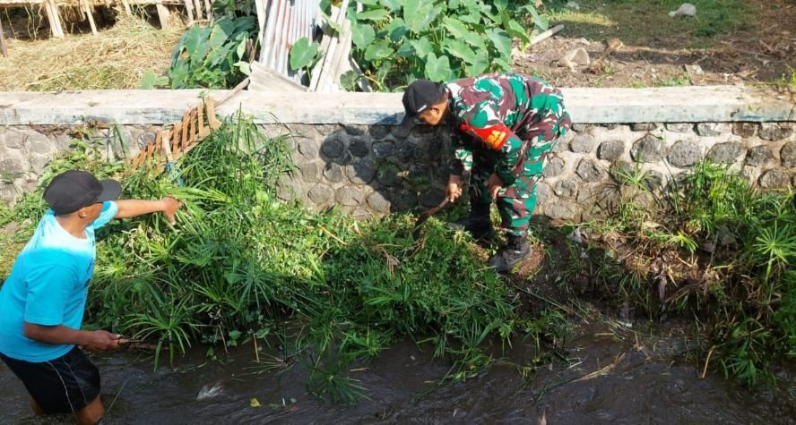 Kegiatan dimulai sejak pagi dengan menyisir sejumlah titik yang rawan tumpukan sampah, termasuk saluran air dan bantaran sungai. Warga dibantu Babinsa bergotong royong memungut sampah plastik, memangkas rumput liar, serta membersihkan endapan di aliran sungai yang mulai tersumbat.
