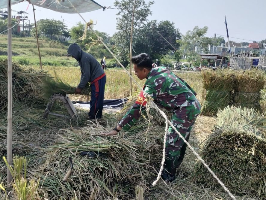 Sketsamalang.com – Babinsa Koramil 0833-05/Lowokwaru, Sertu Ahmad, aktif mendampingi panen padi yang dilaksanakan para petani di wilayah Kelurahan Tunjungsekar, Kecamatan Lowokwaru, Kota Malang, Senin (23/6/2025).