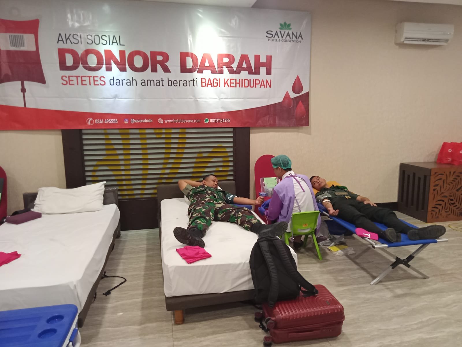 Personel yang mengikuti Aksi Donor Darah diantaranya, personel Kodim 0833/Kota Malang, Anggota Korem 083, Yon Arhanud 2 Kostrad, Kesdam dan Karyawan Savana.