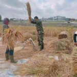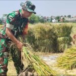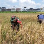 Sketsamalang.com – Babinsa Koramil 0833/04 Sukun, Sertu Widodo bersama Kelompok Tani Rukun
