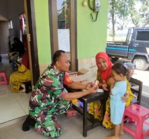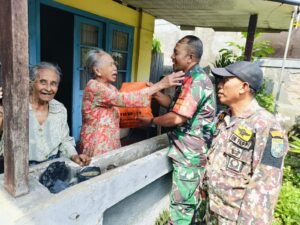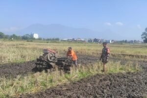Sketsamalang.com – Babinsa Koramil 0833/05 Lowokwaru Serma Mashudi turun ke sawah bantu
