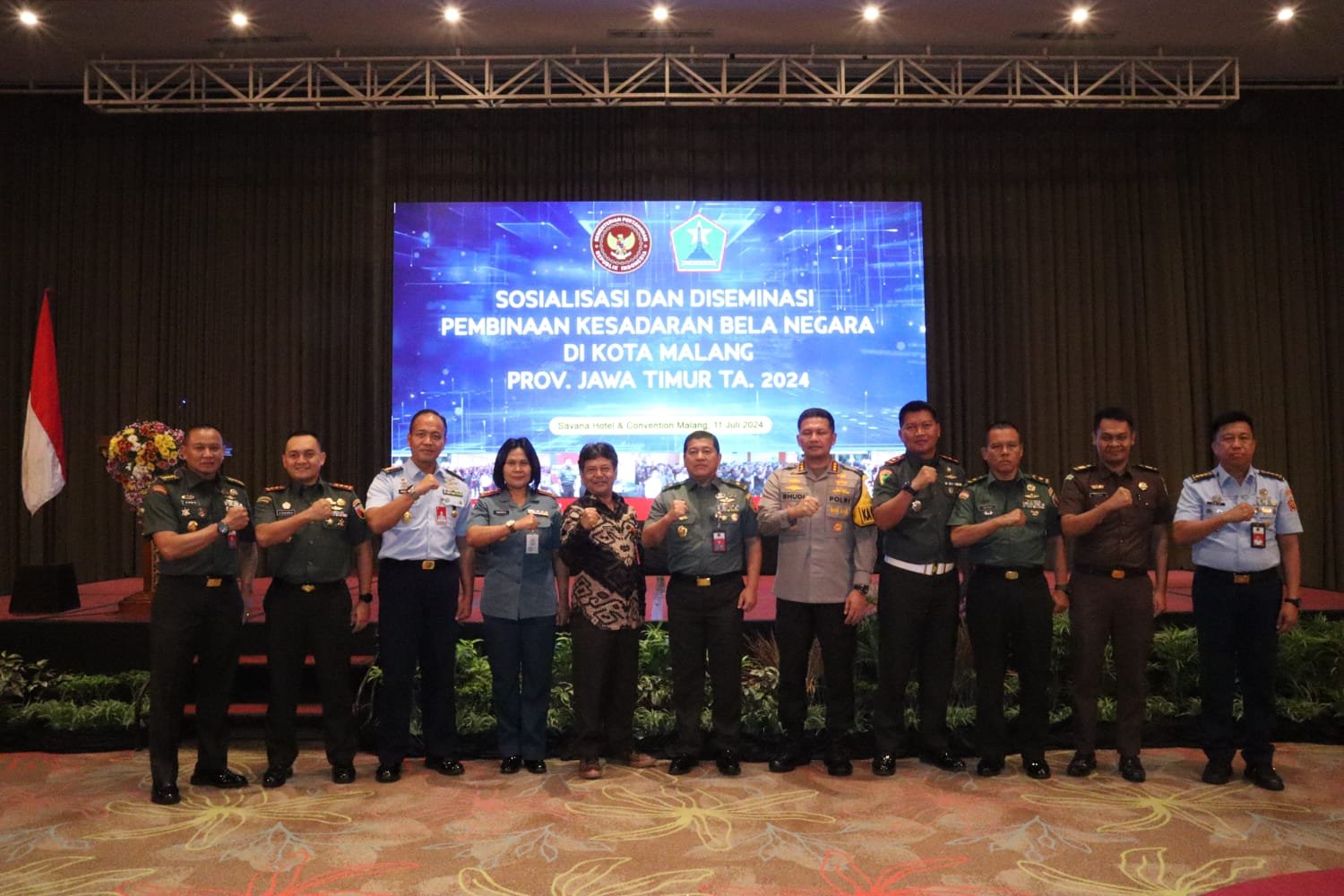 Kegiatan tersebut di hadiri oleh Direktur Bela Negara Ditjen Pothan Kemhan RI (Brigjen TNI G. Eko Sunarto, S.Pd., M.Si, PJ Wali Kota Malang diwakili Kepala Bakesbanpol Pemkot Malang Kota Drs. Ali Mulyanto MM, Danlanud Abd Saleh diwakili Kadispers Lanud Abd. Saleh, Kolonel Adm Haridinuto, S.T PGDip., MSS, Danlanal Malang Kolonel Laut KH/W Dewi Lestari, S. Pd., M. Tr. Hanla., M. M., CRHMP. Kapolresta Malang Kota, Kombes Pol Budi Hermanto,S.I.K.,M. Si, Dandim 0833/ Kota Malang Letkol Arm Aris Gunawan, M.HanD andenpom V-3/Malang, Mayor Cpm Nur Mahmud, Para Tokoh Agama,Tokoh Adat dan Tokoh Masyarakat.