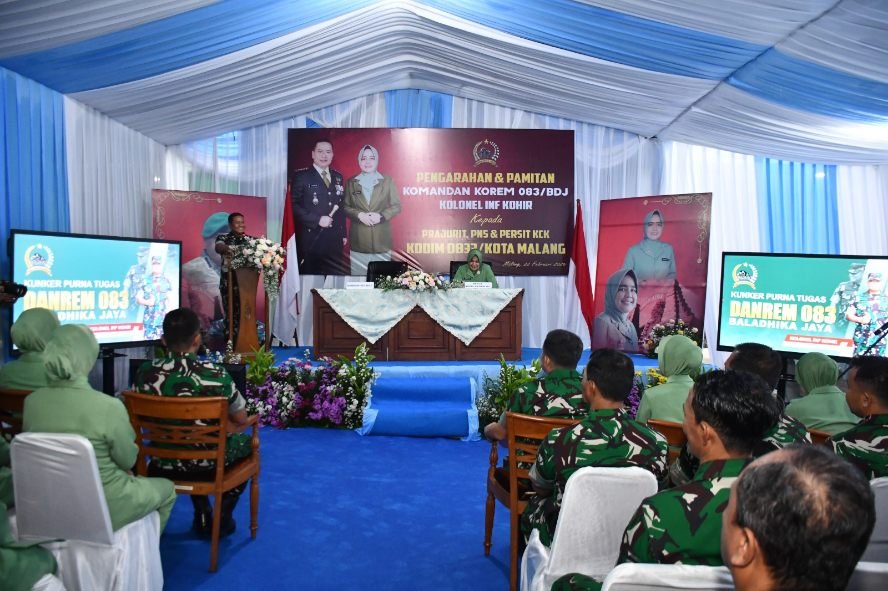 Sketsamalang.com – Suasana haru menyelimuti Markas Kodim 0833/Kota Malang saat Komandan Korem 083/Baladhika Jaya, Kolonel Inf Kohir, berpamitan kepada prajurit dan Persit Kartika Chandra Kirana Kodim 0833/Kota Malang, Minggu sore (22/2/2026).