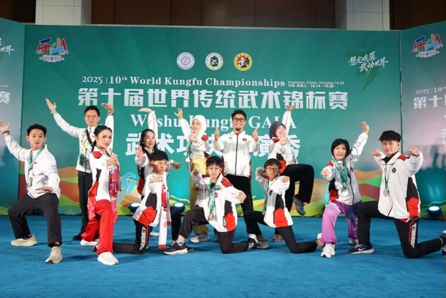 Foto bersama perwakilan Indonesia lainnya yang mengikuti 10th World Kungfu Championship 2025 (IG: krisdayantilemos)