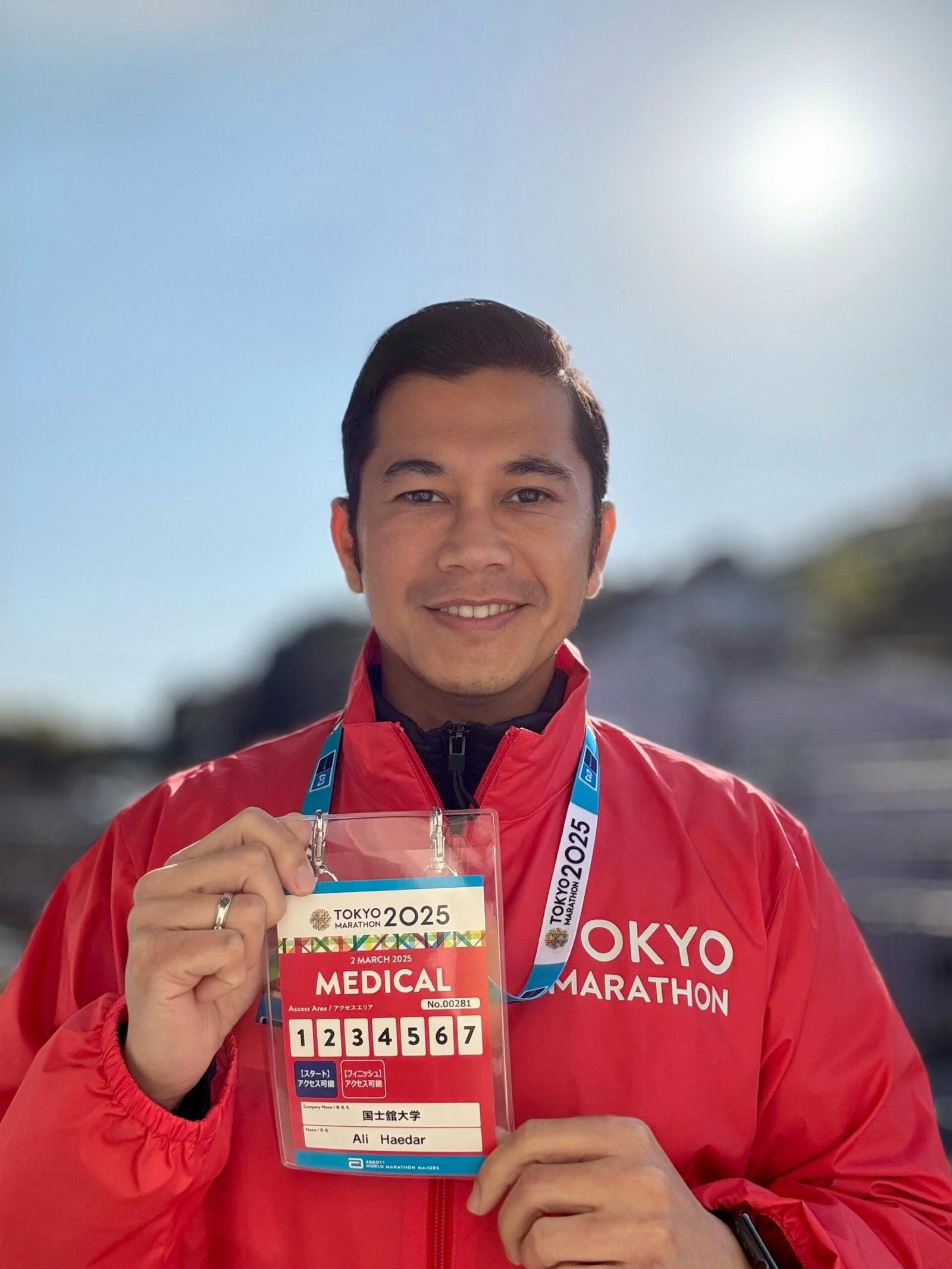 Sebagai bagian dari Medical Standby Team Kokushikan University, dr. Ali Haedar ikut serta dalam operasi medis yang terdiri dari mahasiswa paramedik, paramedis, perawat, dan dokter. Tim ini ditempatkan di berbagai titik strategis sepanjang rute marathon, siap merespons berbagai kondisi medis.