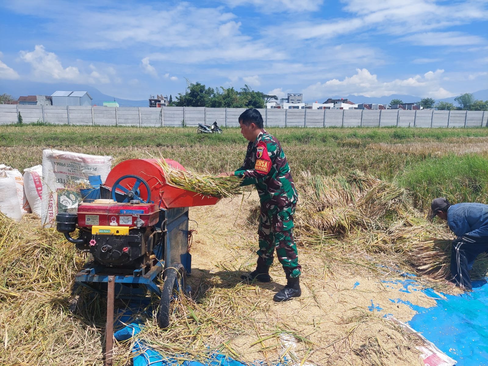 Sketsamalang.com – Babinsa Koramil 0833/05 Lowokwaru, Serda Mahmudin, terjun langsung ke sawah untuk membantu para petani dalam kegiatan panen padi di wilayah Kelurahan Tunggulwulung Kecamatan Lowokwaru Kota Malang, Jum’at (14/3/2025).