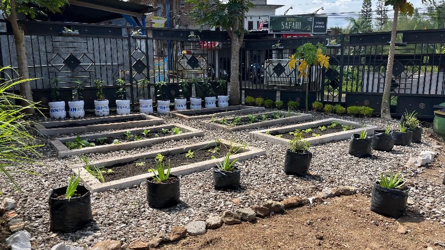 “Jenis tanamannya mengikuti permintaan ibu-ibu PKK, seperti sirih, lengkuas, kumis kucing, serta sayuran seperti sawi daging, andewi, tomat, dan terong,” jelas Abdul Hafiidh Eka Putra, anggota tim KKN.