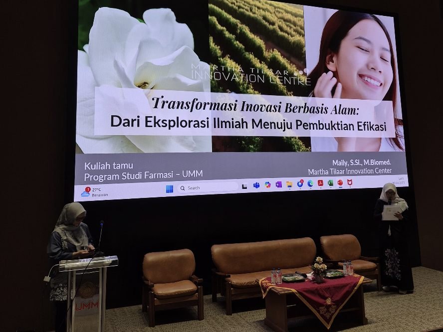 Melalui kegiatan kuliah tamu bertema “Transformasi Inovasi Berbasis Alam: Dari Eksplorasi Ilmiah Menuju Pembuktian Efikasi”, kedua institusi ini menunjukkan komitmen bersama untuk menjembatani dunia akademik dan industri dalam menghasilkan produk farmasi alami yang ilmiah, berdaya saing, dan berkelanjutan. Acara berlangsung di Aula Lantai 2 GKB V UMM, Kamis (30/10/2025).