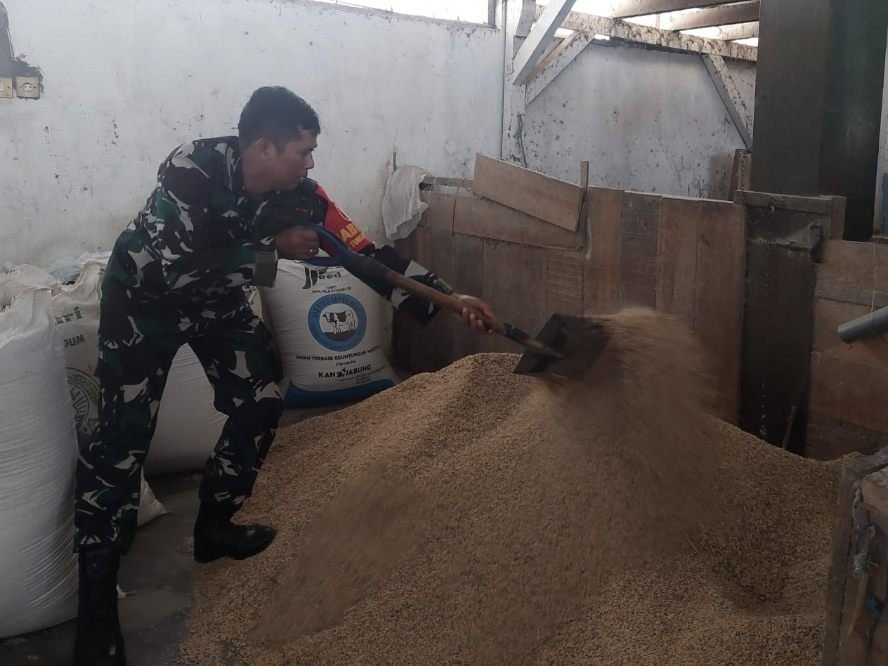 Proses pengeringan dilakukan secara manual di lahan terbuka dan memanfaatkan sinar matahari. Selain itu, Babinsa juga berkoordinasi dengan penyuluh pertanian dan kelompok tani setempat untuk mengoptimalkan proses pasca panen lainnya.