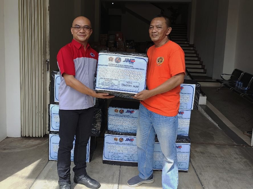 “PWI Malang Raya memang berupaya berkontribusi sosial kepada saudara-saudara kita yang terkena musibah,” jelas Cahyono, saat penyaluran bantuan melalui JNE, Kamis (11/12/2025).