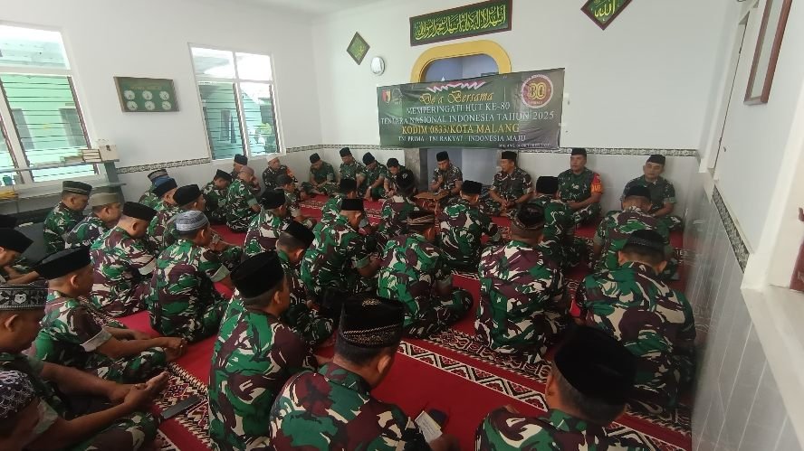 Sketsamalang.com – Dalam rangka memperingati Hari Ulang Tahun ke-80 Tentara Nasional Indonesia (TNI), Kodim 0833/Kota Malang menggelar doa bersama yang diikuti oleh seluruh personel militer, Sabtu (4/10/2025).