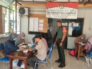 Sketsamalang.com – Babinsa Koramil 0833/03 Blimbing Kelurahan Pandanwangi, Serka Suwarno bersama Kepala