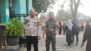 Sketsamalang.com – Babinsa Koramil 0833/05 Lowokwaru Pelda Slamet dan Sertu Sumadi, bersama