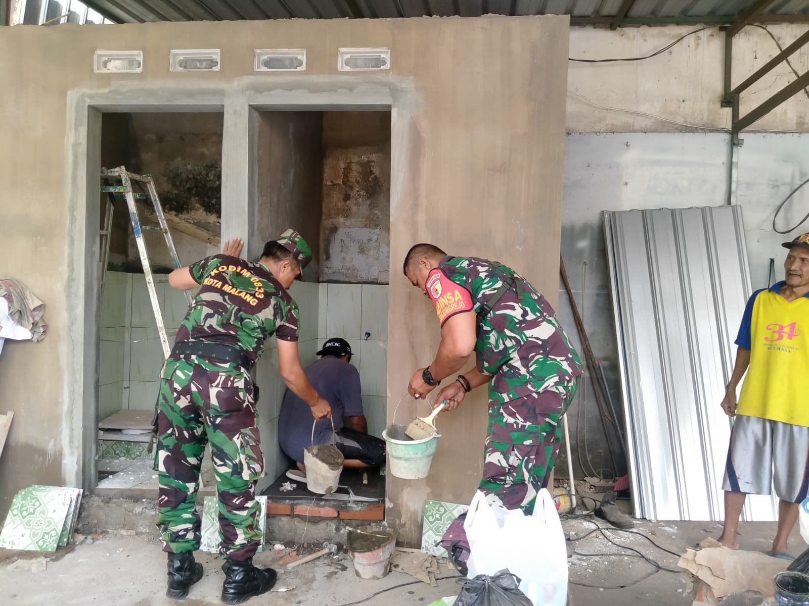 Babinsa Koramil 0833/04 Sukun, Kelurahan Tunjungrejo, Serda Wakidun dan Kopka Arifin, aktif membantu warga binaanya dalam berbagai aspek, terutama pembangunan jamban bagi warganya.