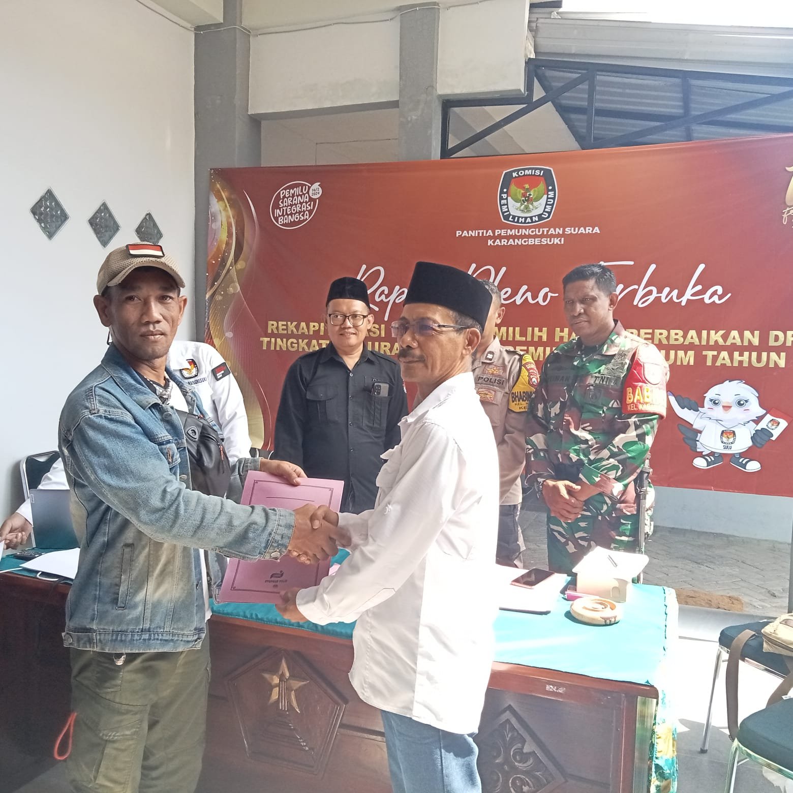 Ditemui disela pelaksanaan rapat pleno terbuka, Babinsa kelurahan Karangbesuki, Serma Kuswandi mengatakan, sebagai aparat kewilayahan, siap mengamankan serta mendukung suksesnya pelaksanaan pemilu pada tahun 2024 mendatang.