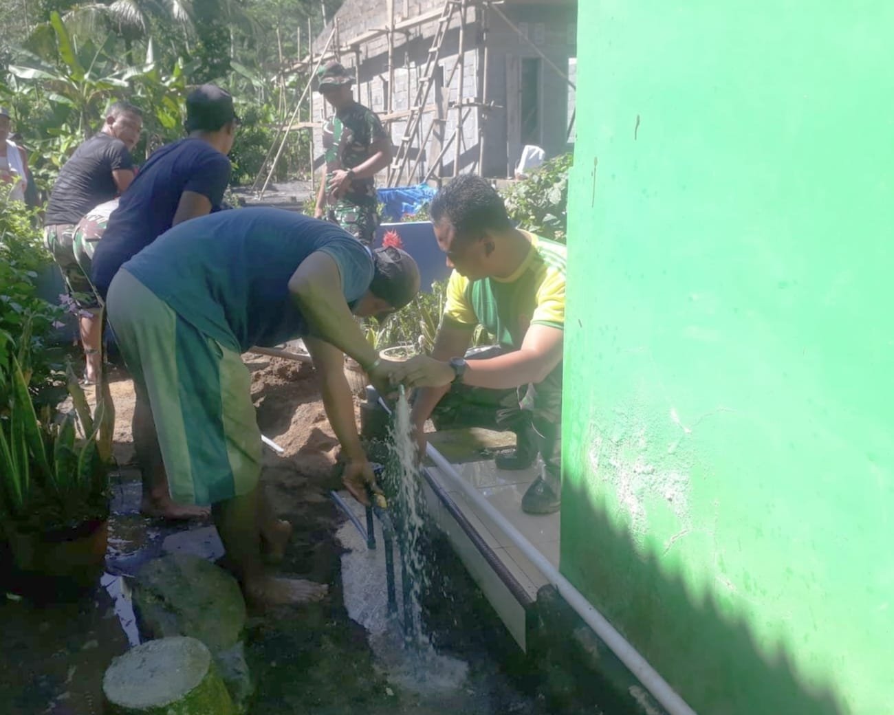 TMMD ke-126 Kodim 0818 Bantu Pemasangan Pipa Air Bersih ke Rumah Warga