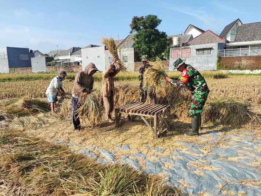Wujud Kepedulian Ketahanan Pangan, Babinsa Bantu Panen Padi