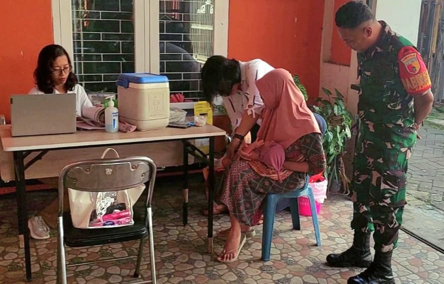 Kegiatan imunisasi tersebut merupakan bagian dari program pemerintah dalam meningkatkan kekebalan tubuh anak sejak dini guna mencegah berbagai penyakit menular. Kehadiran Babinsa dalam kegiatan ini bertujuan untuk memberikan rasa aman dan nyaman serta memastikan kegiatan berjalan tertib dan lancar.